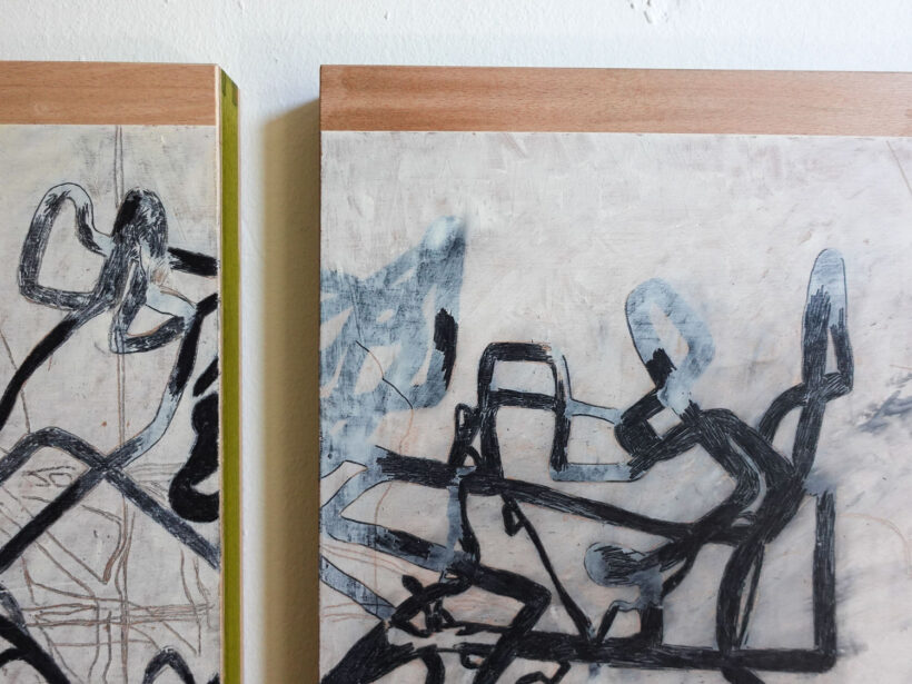 4-teilig, je 50 x 40 x 3 cm, Mischtechnik auf Holz, 2024